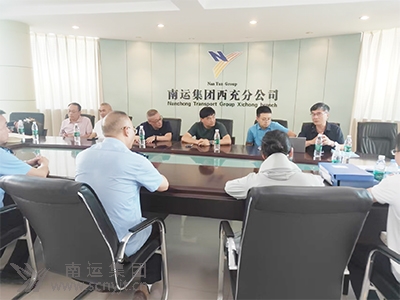 省委軍民融合辦安全生產(chǎn)處處長(zhǎng)馬光睿(上排右三)在西充車(chē)站會(huì)議室座談。